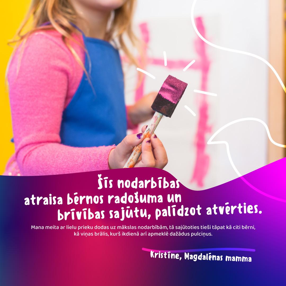 Kopš 2019.gada rudens piedāvājam bērniem ar funkcionāliem traucējumiem apmeklēt mākslas nodarbības, kurās bērniem ir iespēja attīstīt savas iemaņas un socializēšanās spējās, apgūstot mākslas nodarbībās pielietotās prasmes – zīmēšanu, gleznošanu, aplicēšanu u.c.
